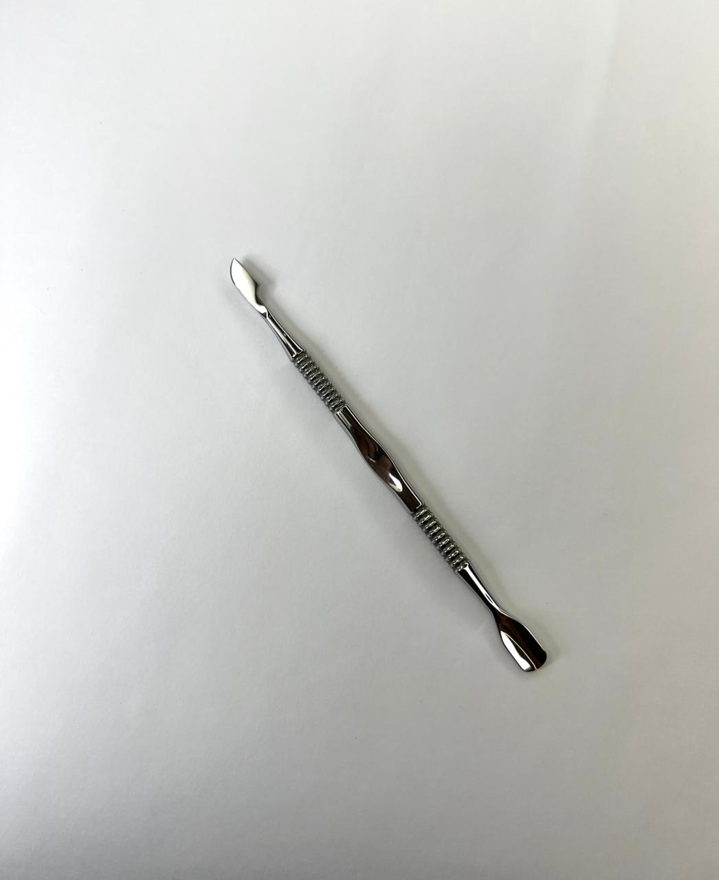A espátula de metal dupla para cutícula é um instrumento profissional, geralmente em aço inoxidável, essencial para empurrar e raspar cutículas, facilitando sua remoção. Com pontas diferenciadas (tipo espátula e faca/palito), é esterilizável, resistente e durável, apresentando cabos texturizados antiderrapantes para maior precisão e conforto durante o uso.